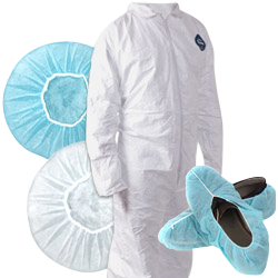 We sell a wide array of hygienic, protective and chemical-resistant clothing, coveralls with optional hoods and boots, anti-skid shoe covers, bouffant caps, and hair and beard nets.